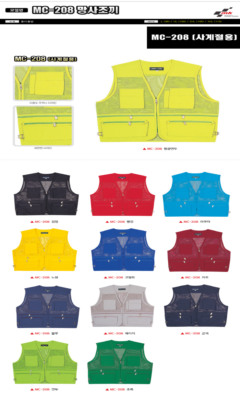 •Size : L, XL, 2XL, 3XL •소재 : 폴리풀달 ※단가변동 있을 수 있습니다. 제품 색상은 인쇄된 것이므로 실제 제품과 다소 차이가 있을 수 있습니다. MC-208