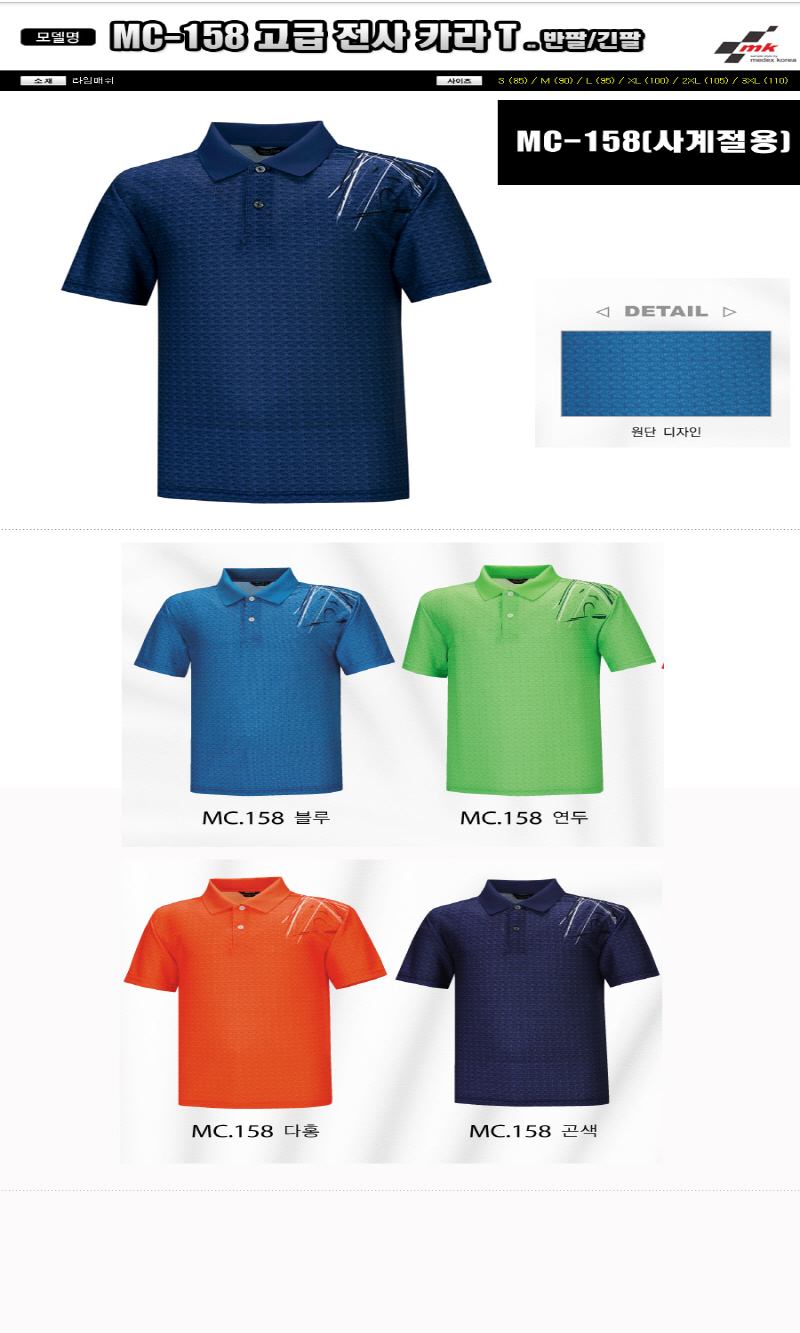 MC-158 •Size : S, M, L, XL, 2XL, 3XL •소재 : 라임매쉬 ※단가변동 있을 수 있습니다. 제품 색상은 인쇄된 것이므로 실제 제품과 다소 차이가 있을 수 있습니다.