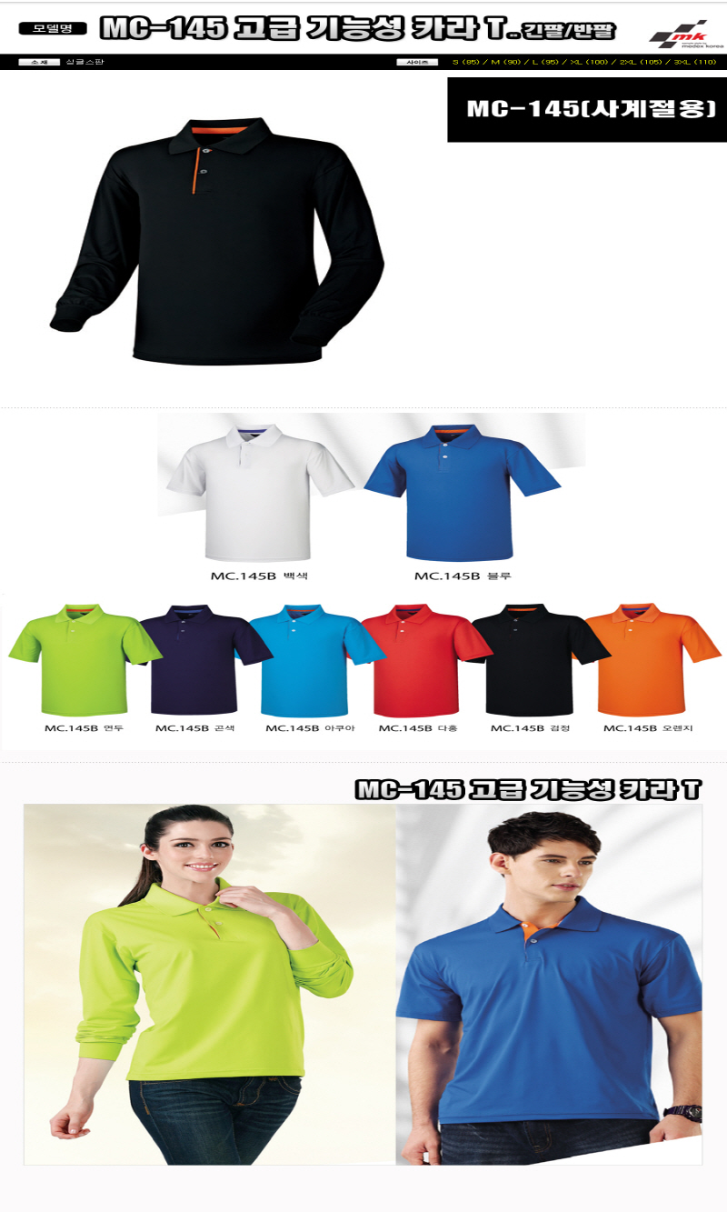 •Size : S, M, L, XL, 2XL, 3XL •소재 : 싱글스판 ※단가변동 있을 수 있습니다. 제품 색상은 인쇄된 것이므로 실제 제품과 다소 차이가 있을 수 있습니다. MC-145