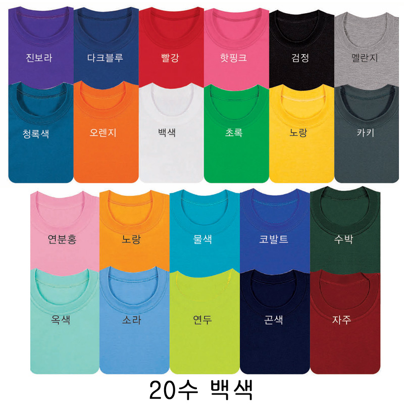 (20수) 백색 •Size : S, M, L, XL, 2XL, 3XL ※단가변동 있을 수 있습니다. 제품 색상은 인쇄된 것이므로 실제 제품과 다소 차이가 있을 수 있습니다.