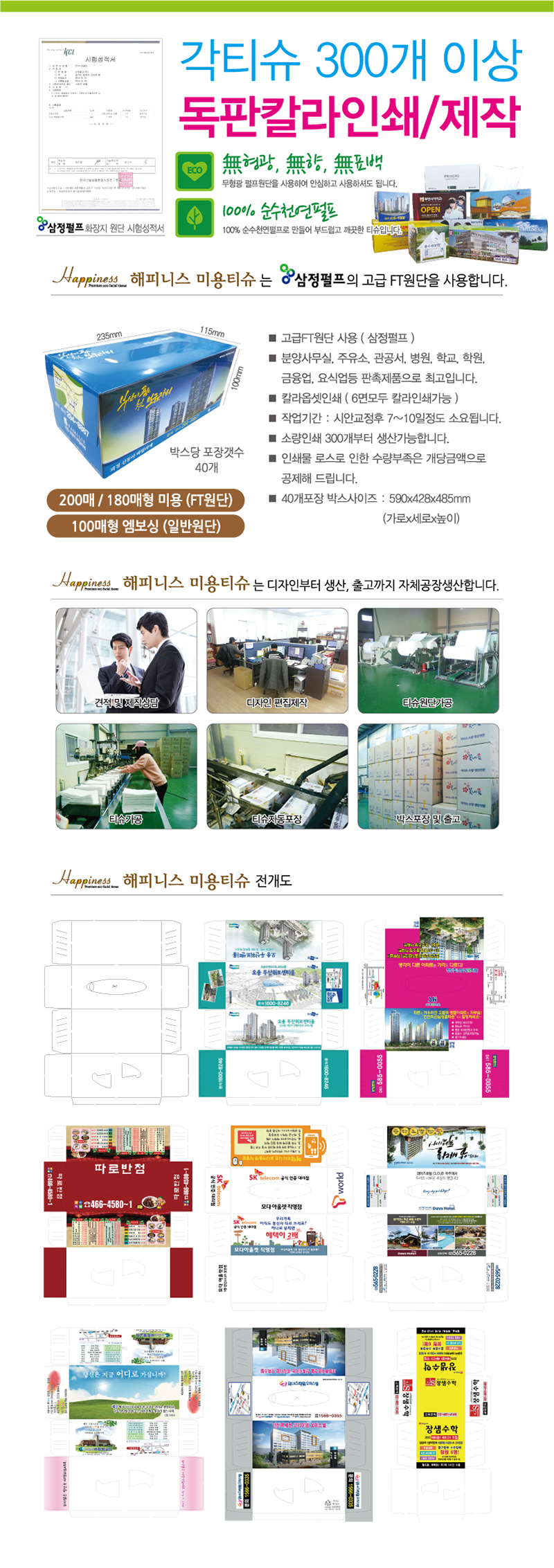 •규 격 : 235 X 115 x 100mm •1BOX당 수량 : 40EA •500개 제작가능 (별도문의) •수량별 가격 별도문의 ※기본 모나리자 원단 사용