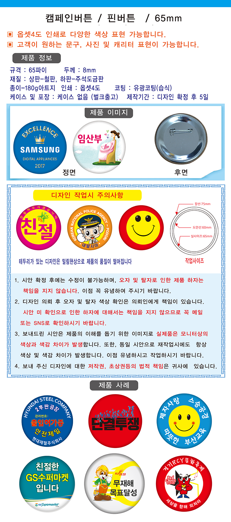 •1,000EA •기본수량 : 100EA •1,000개 이하 가격 별도 문의 •재질:철판/옵셋인쇄(유광코팅) •케이스 및 포장 : 케이스 없음(벌크출고) •제작기간:디자인 확정 후 5일