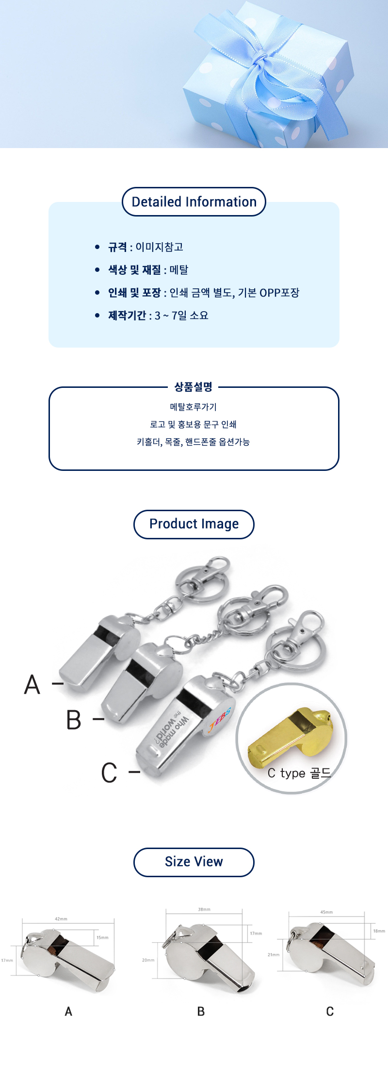 메탈 호루라기 A,B,C / (小,中,大)