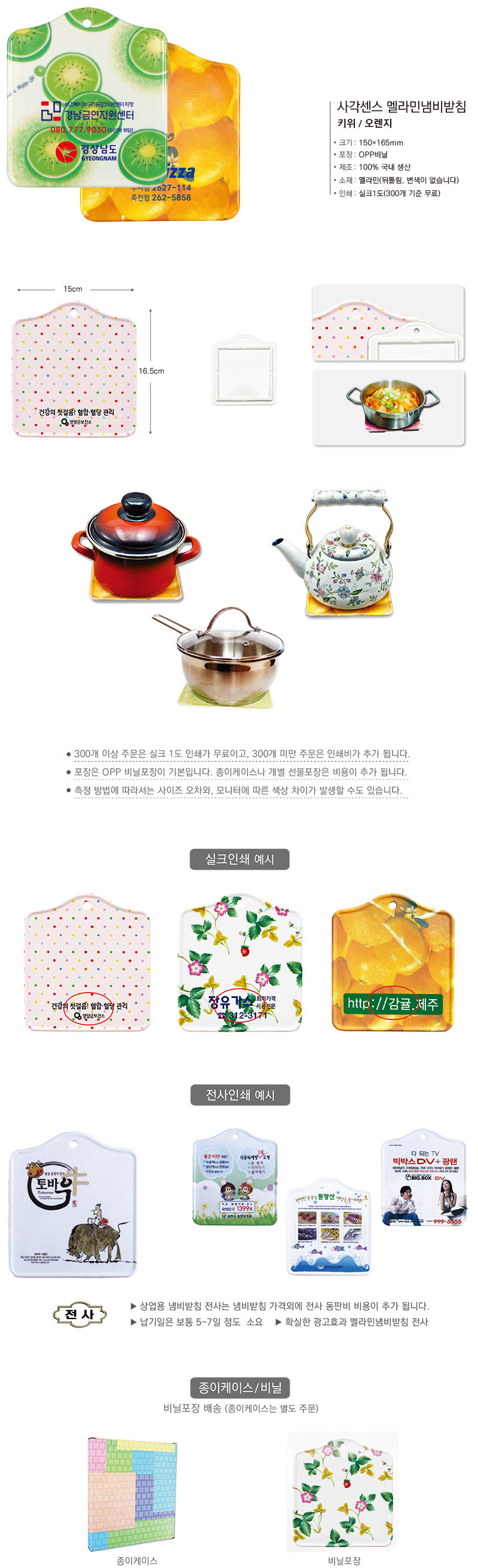 •Size : 150×165mm ※멜라민냄비받침 ※ 기본 OPP포장 기준(종이케이스 포장시 50원 추가)