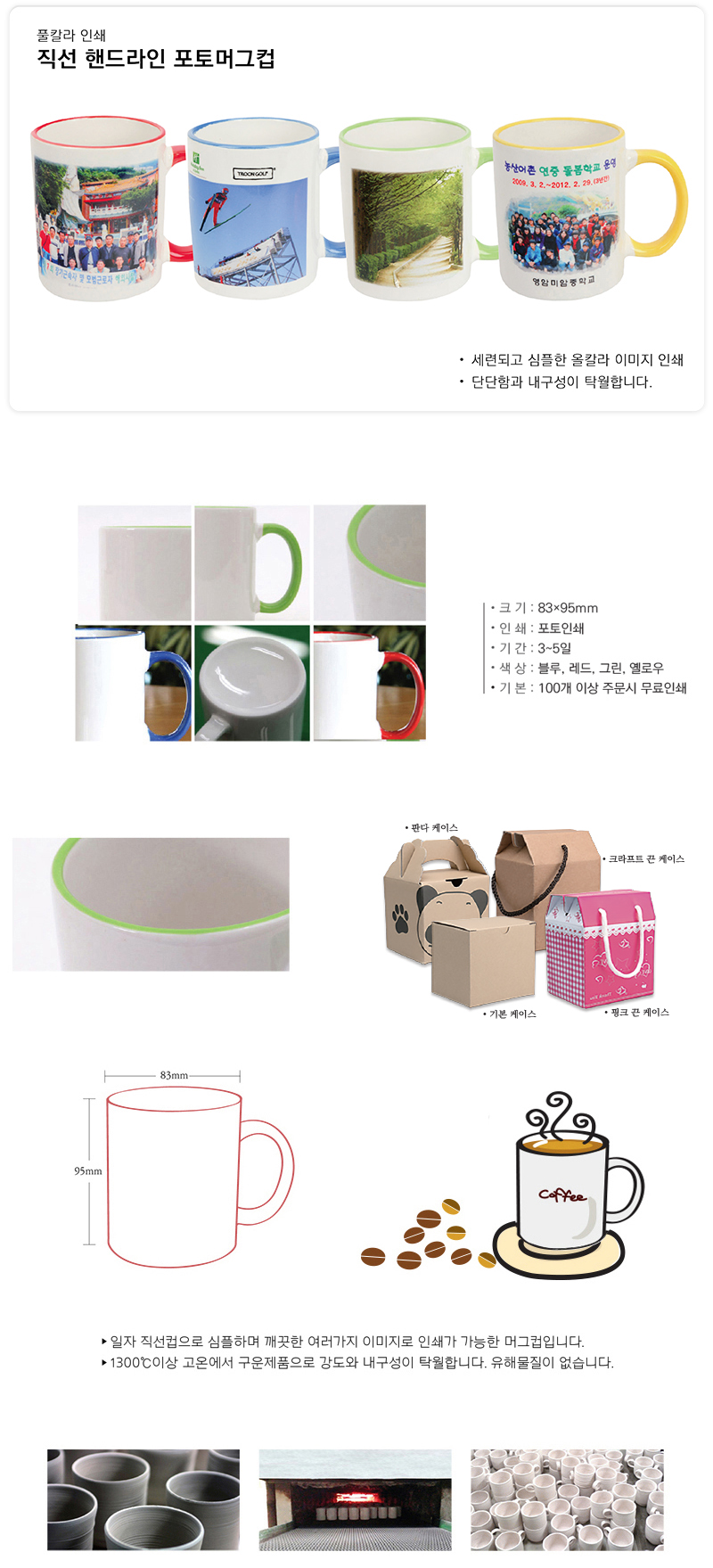 •기 본 : 100개 이상 / 앞면인쇄기준 •Size : 83Øx95mm ※ 1도인쇄 포함 / 2도이상 칼라인쇄 별도 문의