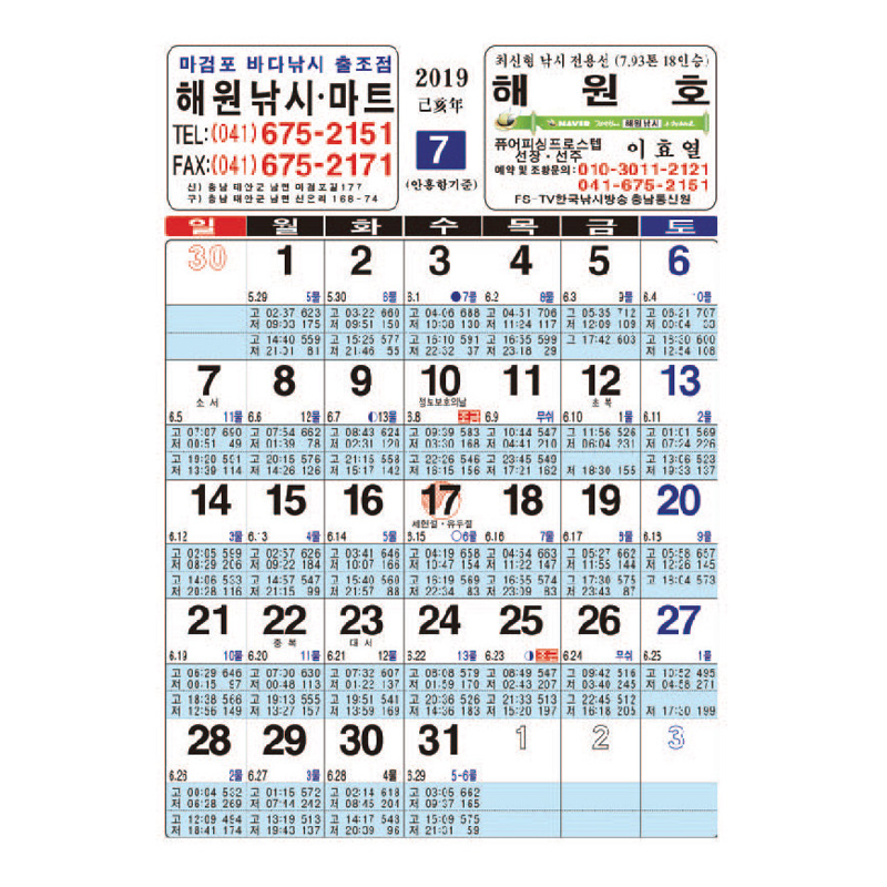 물때 카렌다 (A4)