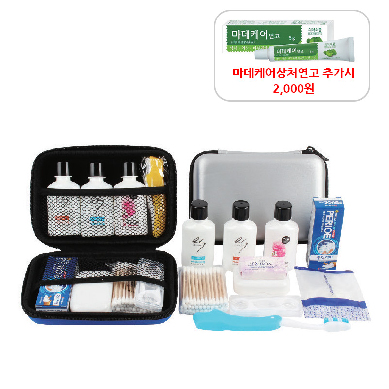 •고급 칼라 종이케이스 •SIZE : 180X120X55(mm) •수량 : 100EA •1박스 30개 •샴푸, 린스, 바디워시, 치약20g, 접이식 칫솔, 헤어캡, 비누, 비 누곽, 면봉세트, 치간잇실세트, 아트케이스 ※모든 내용물들은 수급상황에 따라 예고없이 변경될 수 있습니다.
