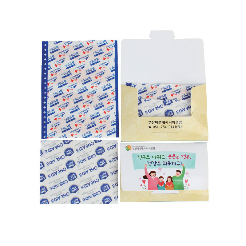 •방수밴드 2P, 표준밴드 4P •100X70(mm) •밴드 1P 추가 20원 •종이케이스 주문형 제작 ※상품 내 모든 구성상품들은 수급상황에 따라 예고없이 변동 될 수 있습니다.