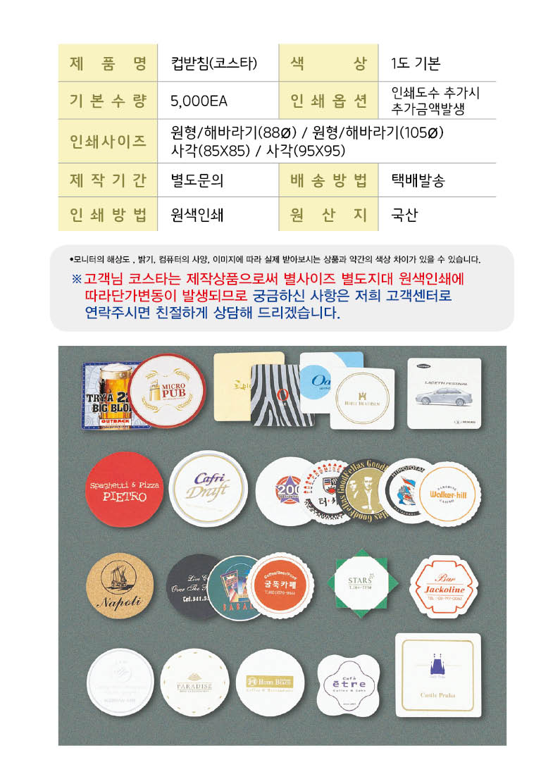 100x100 •1도 추가시 개당 10원 추가 •기본수량:3,000EA/1도 기본 •원색인쇄, 별사이즈, 별도지대 제작문의