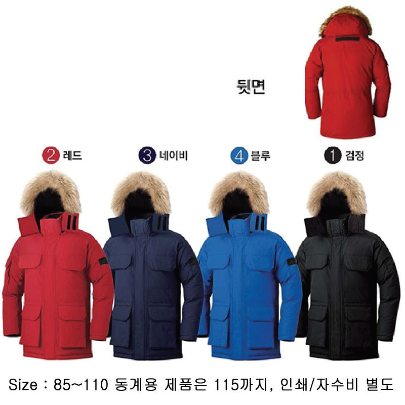 •폴리에스터 100%/충전재:웰론 ※아웃도어(바람막이,파카,패딩)/인쇄, 자수비별도/사이즈:85~110,동계용 제품은 115까지.
