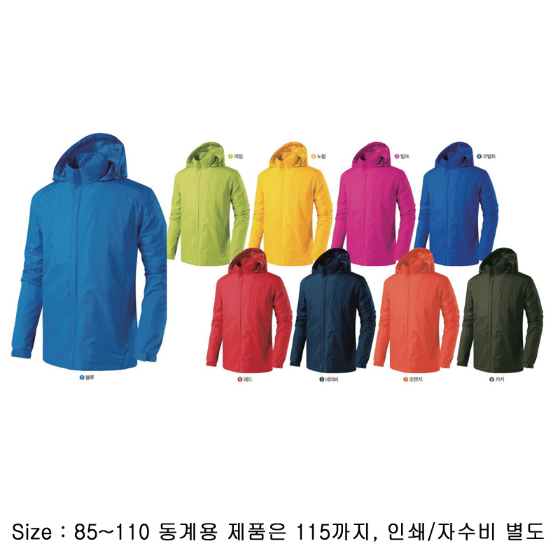 •폴리에스터 100%(망사) ※아웃도어(바람막이,파카,패딩)/인쇄, 자수비별도/사이즈:85~110,동계용 제품은 115까지