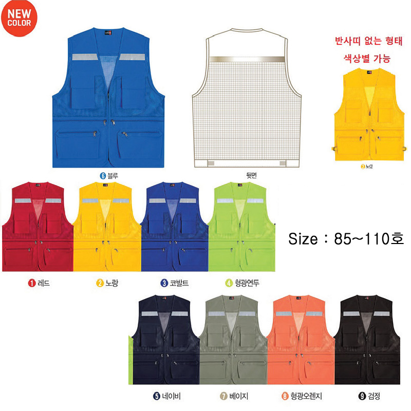 •폴리에스터 100%(반사띠 없는것도 있음) ※사이즈-조끼 : 85호~110호