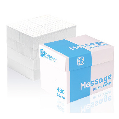 | 기타사항 | •53 x 73 x 53mm •내지 50 x 70mm, 총480매 •백색 / 모눈, 방안, 라인, 무지 (무늬별 120매) •박스 컬러인쇄, 내지 먹1도 •기본수량 100개 |
