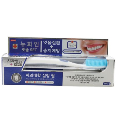 | 기타사항 | •구성품 : 뉴화인치약(200g), 치과쌤칫솔 •사이즈 : 200×50×50㎜ •잇몸질환, 충치예방 |